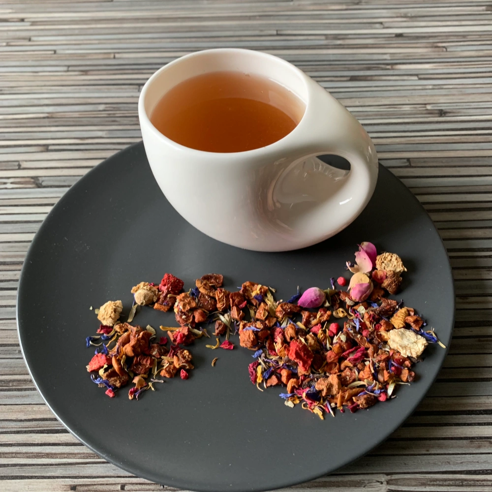 Diese Früchteteekreation fängt den Moment ein, wenn der Winter endgültig weicht und der Frühling leise Einzug hält. Blühende Gärten, frische Luft und die ersten süßen Früchte des Jahres stehen Pate für diese liebevolle Mischung voller Leichtigkeit und Nostalgie.