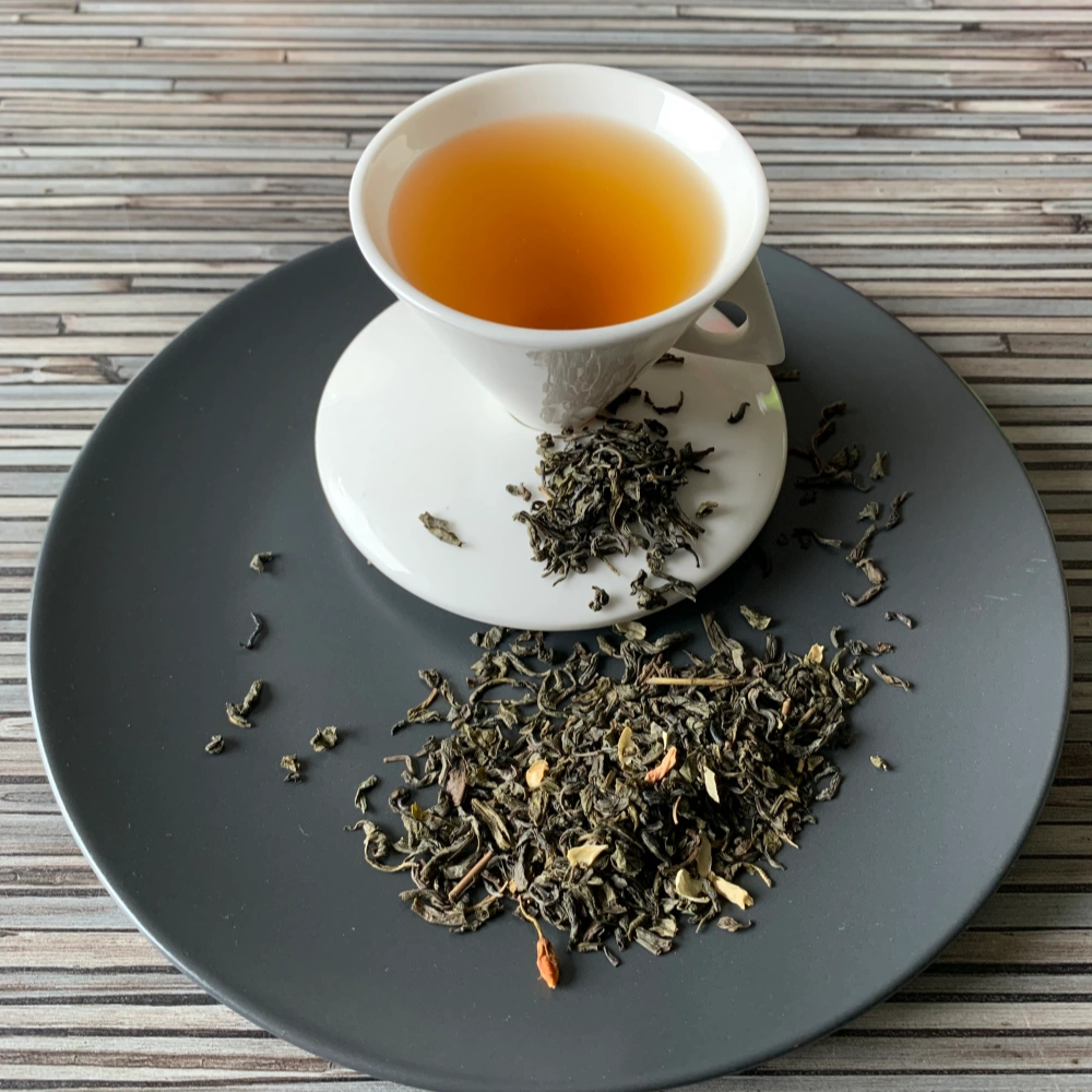 In der Tasse zeigt sich der Grüner Tee China Jasmin hell, klar und einladend. Der Duft ist intensiv blumig, weich und elegant. Geschmacklich entfaltet sich zunächst der milde Grüntee, gefolgt von einem ausgeprägten, aber niemals aufdringlichen Jasminaroma. Der Nachhall ist sanft, floral und lang anhaltend. Ein Tee mit ruhiger Kraft und klassischer Schönheit.