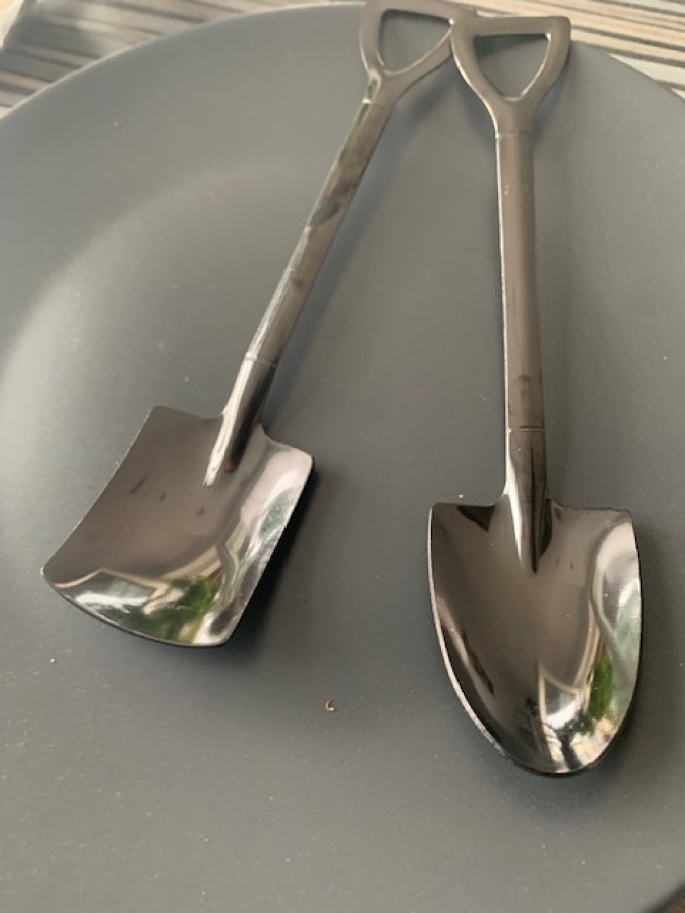 Teelöffel aus Edelstahl Schwarz. Der Löffel besticht durch seine originelle Form, da er aussieht wie ein kleiner Spaten oder Schaufel. Nicht nur für Gartenfreunde, oder Menschen mit einem Faible für Pflanzen, ein witziges Geschenk.